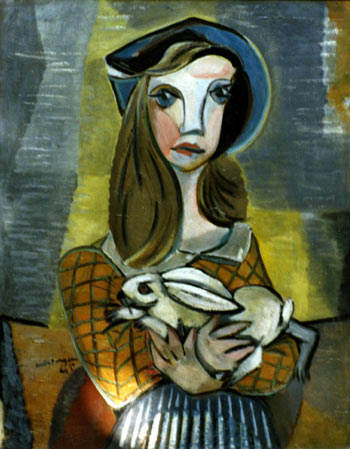| Bar maid - oil on canvas - 1968 - 46 x 56 cm | Girl with rabbit - oil on wood - 1940 - 80 x 110 cm | |